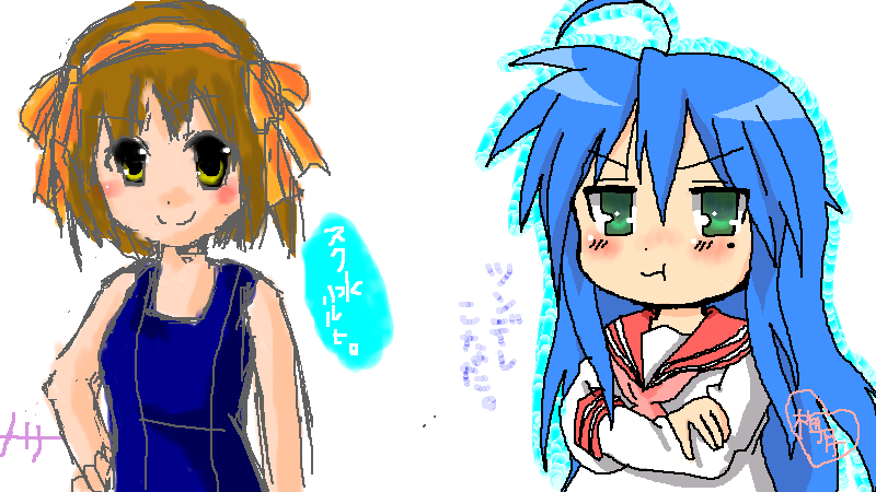 メリーさん:ハルヒ+スク水 梅月:こなた+ツンデレ